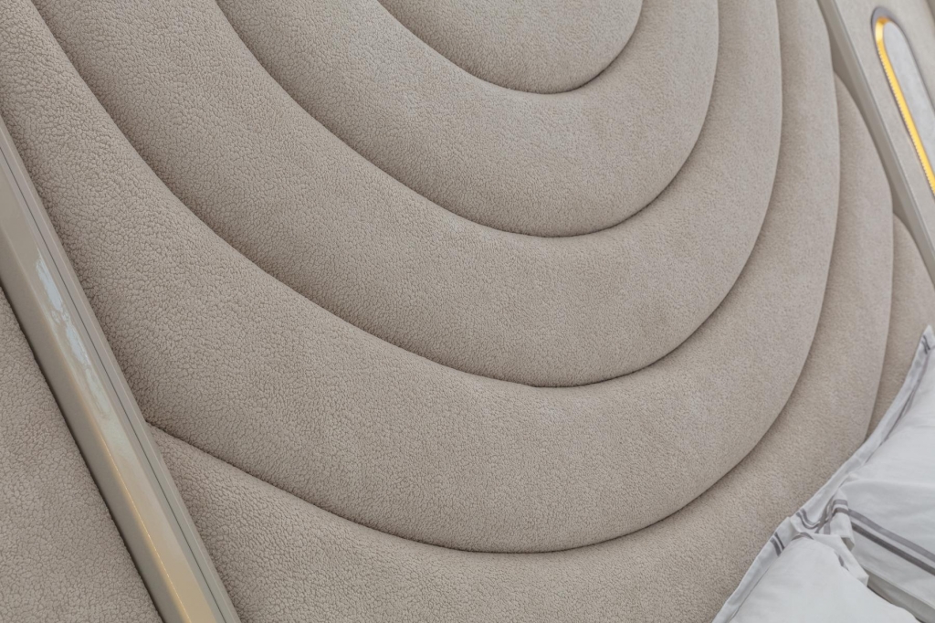 Takımın en dikkat çekici unsuru olan yatak başlığı, modern çizgileri ve dolgun formu ile hem görsel bir odak noktası oluşturur hem de konforlu bir kullanım sağlar. Yumuşak dokulu yüzeyi sayesinde sırt destekli rahat bir oturum imkânı sunar. Geniş ve sağlam karyola yapısı, dayanıklı iskelet sistemi ile uzun ömürlü kullanım vadeder.